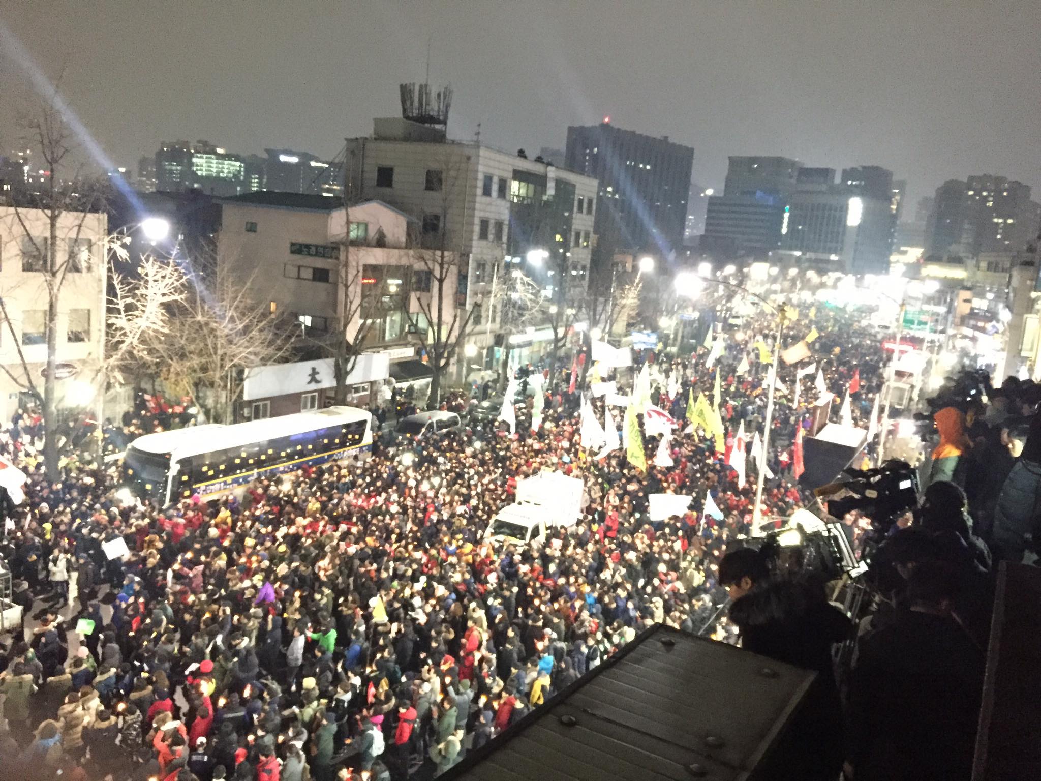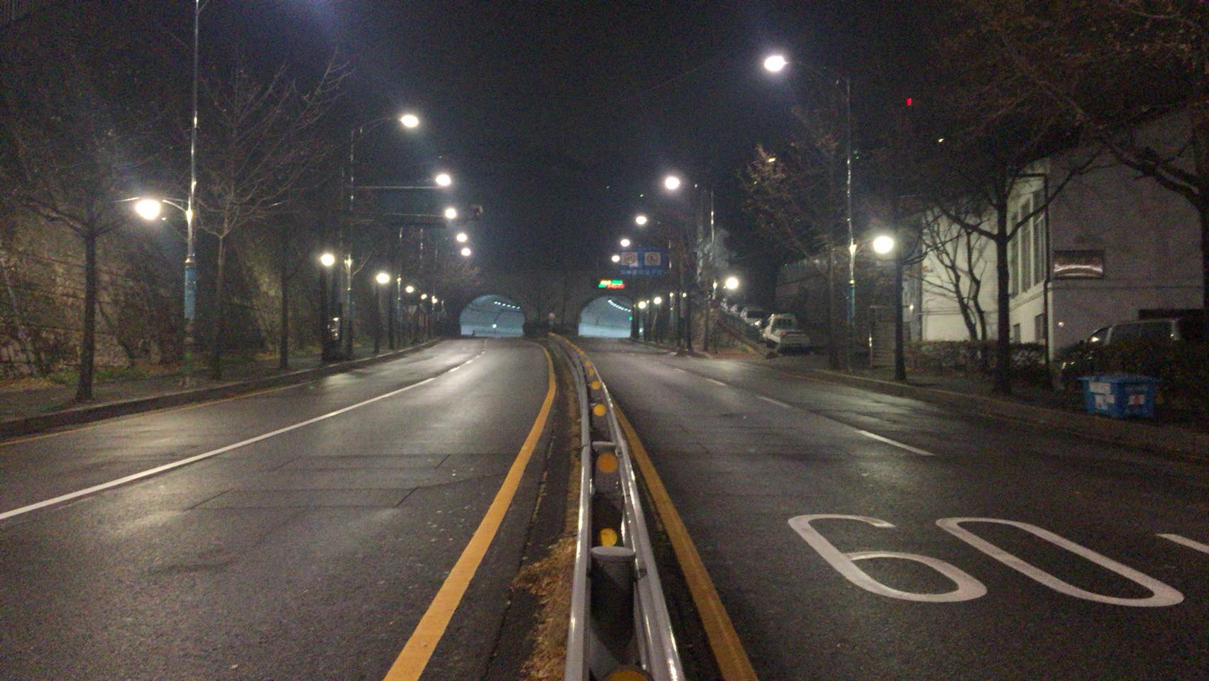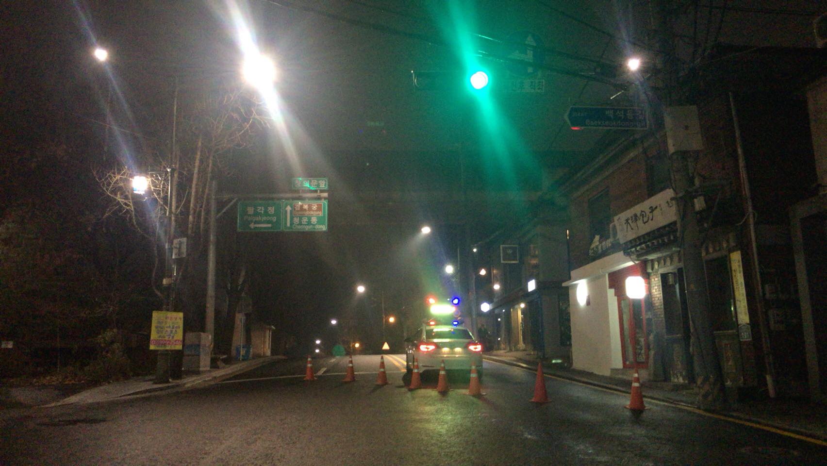 광화문 쪽에서 청와대로 오는 인원은 물론, 뒤에서 오는 인원을 막기 위해 통제된, 한산한 도로의 모습이 인상적이다. 아마도 나와 같은 생각을 가지고 이 루트로 접근하는 이들도 있을 것이다. 상대적으로 경계가 소홀하다. (19:40)